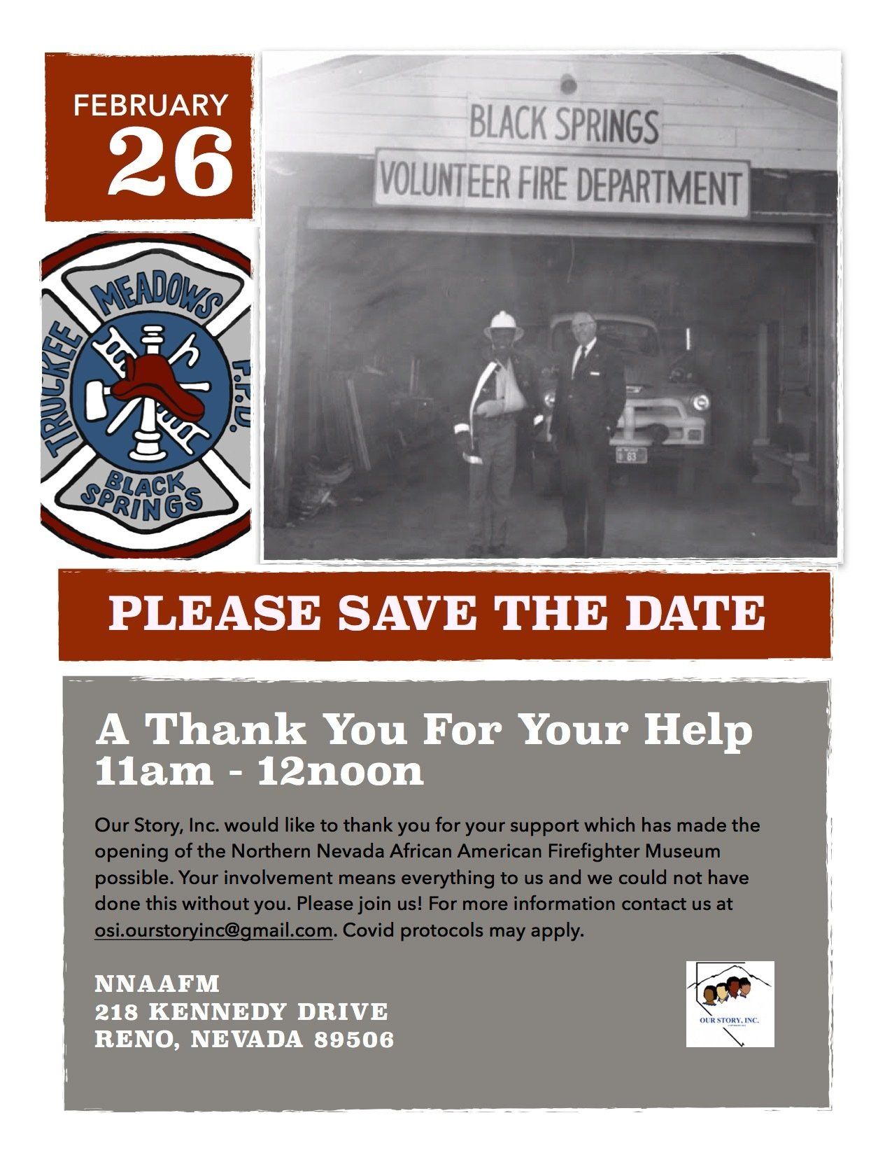 The process of acquiring & preparing the historic Black Springs Volunteer Fire Department building was an experience we will always remember and are grateful for. We thank Washoe County, donors and the dedicated volunteers that have made the opening of the Northern Nevada African American Firefighter Museum possible.
